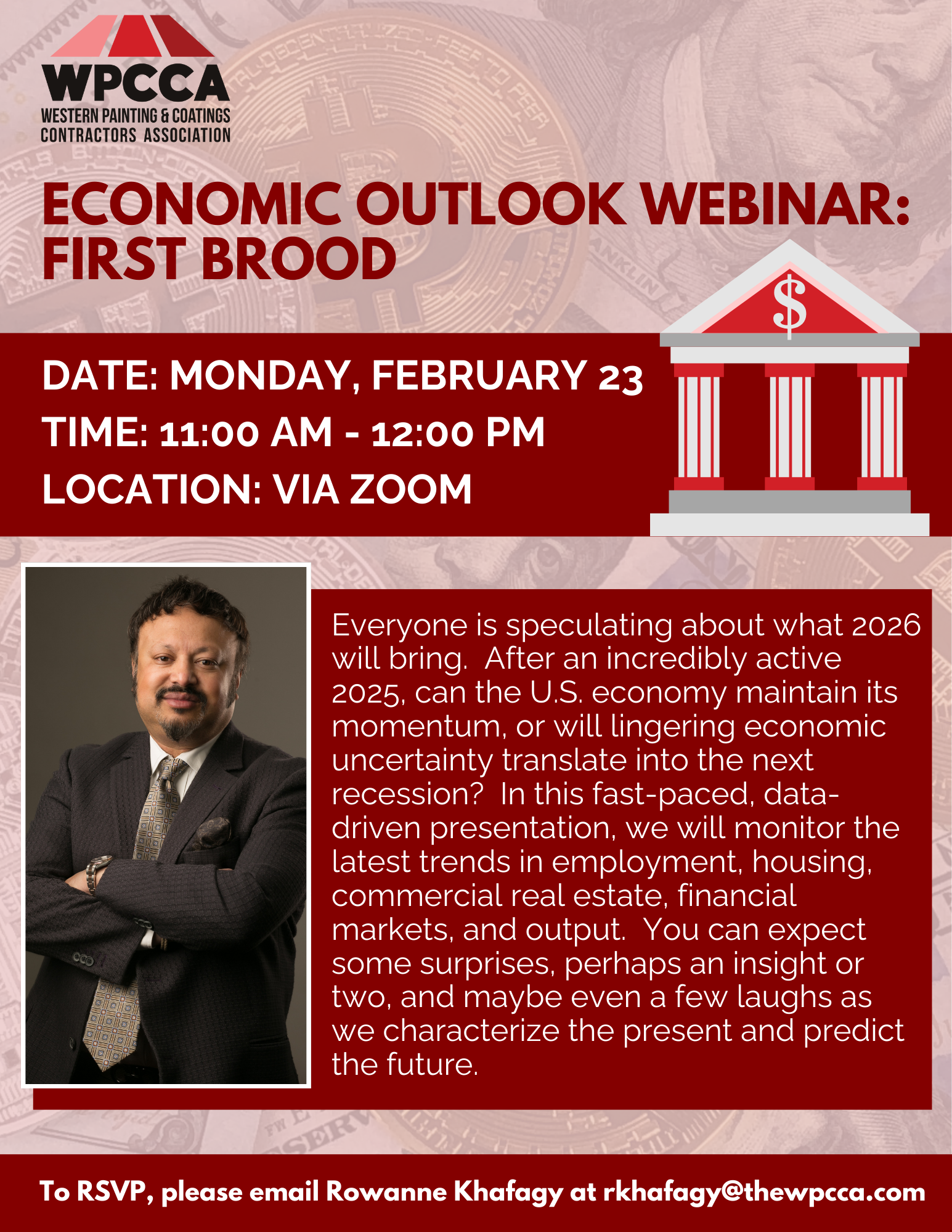 Everyone is speculating about what 2026 will bring. After an incredibly active 2025, can the U.S. economy maintain its momentum, or will lingering economic uncertainty translate into the next recession? In this fast-paced, data-driven presentation, we will monitor the latest trends in employment, housing, commercial real estate, financial markets, and output. You can expect some surprises, perhaps an insight or two, and maybe even a few laughs as we characterize the present and predict the future.